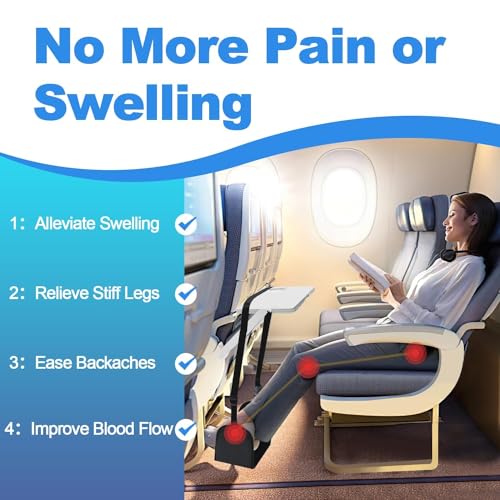 - Airplane Travel Essentials: Wherever you are,this Footrest will give a super comfort to your feet.The hanging footrest will relieve the stress on your back,knees,improves body circulation.Works great in working a whole day at office,traveling by airplane,train,bus,steamboat and self-driving tour rest.Making you work relaxed and travel more enjoyable