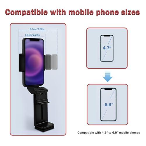 - Compatible with 4.7-6.9 inch phones: The phone holder for the plane is adjustable from 1.89 to 3.5 inches and fits phones from 4.7 to 6.9 inches. Compatible with iPhone 16/15/14/13/12/11/X/8 Galaxy S24/S23/S22/S21 Google Pixel Huawei LG Sony and other Android phones. NOTE: Not suitable for iPad series and does not provide sufficient grip when attaching the base clamp to very thin objects (<5mm/0.19in)