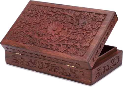 - 【HAND-CARVED WOODEN DECORATIVE BOX】: The Ajuny Decorative Trinket Jewelry Box features intricate floral carvings, showcasing skilled craftsmanship. The elegant design and attention to detail make it a unique and beautiful piece.
