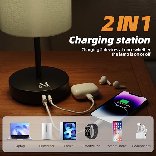 - [Dual USB Charging Ports] Each bedside lamp includes USB-A and USB-C ports (5V/2.1A) to charge your phone, tablet, or watch, even when the table lamp is off—no extra outlets needed.
