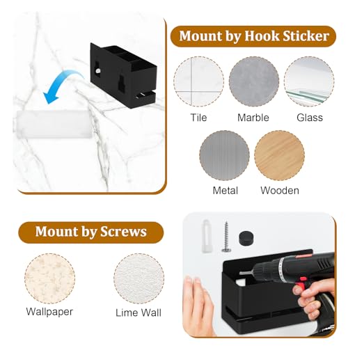 - 【Multifunctional storage】The black toothbrush holder wall mounted has 3 slots for placing electric toothbrushes, toothpaste, razors, combs, makeup brushes and other bathroom supplies.