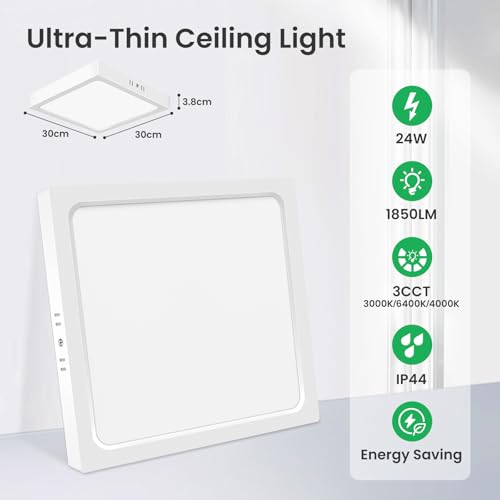 - ✅【Energy Saving Ceiling Light】- Saving 88% energy, our 24W 1800LM led ceiling light fixture is equivalent to 240W fluorescent lamps, no flicker, which can protect your eyes and brain, lifespan up to 30000 hours.