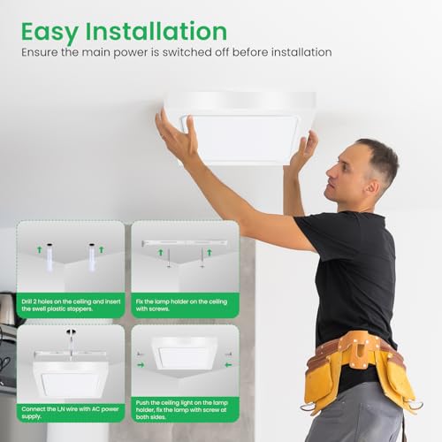 - ✅【IP44 Bathroom Ceiling Light】- This square flush ceiling light sits close to the ceiling, perfect for damp and dusty places such as bathroom, living room, kitchen, hallway, bedroom, stairs, balconie, garage and attic room.