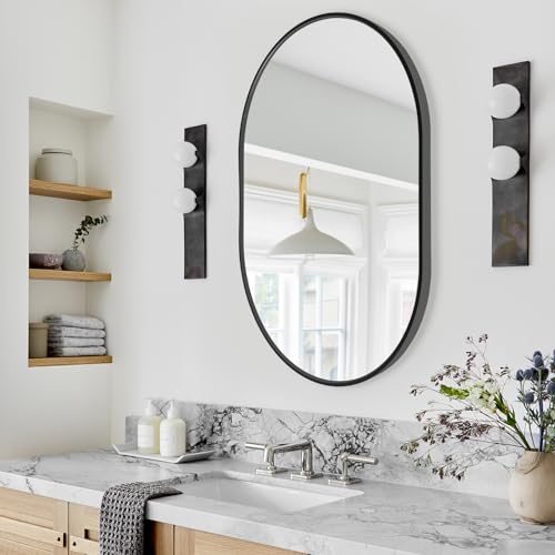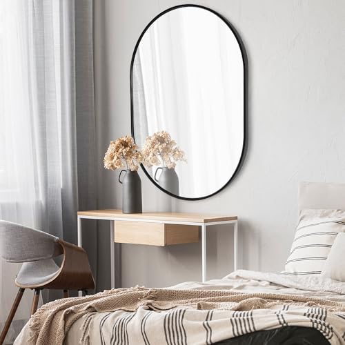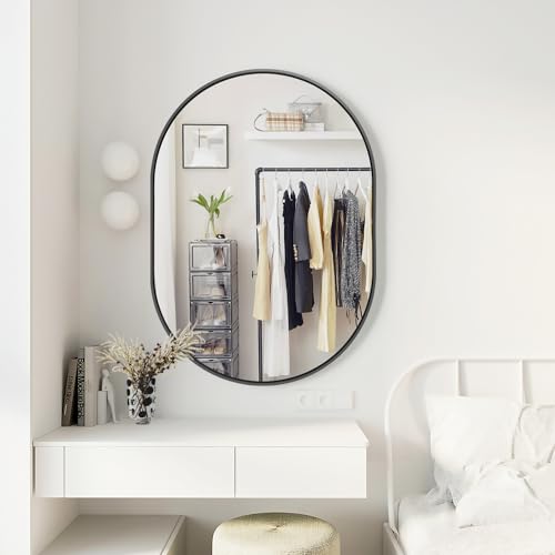 - Stylish 50x70cm brushed frame wall mounted mirror made of aluminium frame is sturdy and eternal to resist humidity, floating glass can prevent warping and distortion, give you a real HD imaging