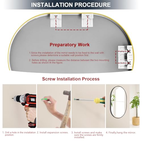 - The frame mirror is designed with mounting hole on the back. Use the attached wall mount to fix the mirror on the wall. Contains screw.