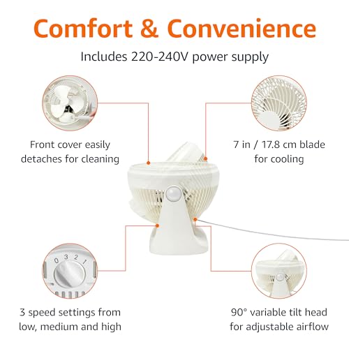 - LIGHTWEIGHT & PORTABLE: This 7 inch fan's size makes suitable for use in tight spaces, such as desks, nightstands, and countertops as well as in bedrooms, living rooms, or in the kitchen.