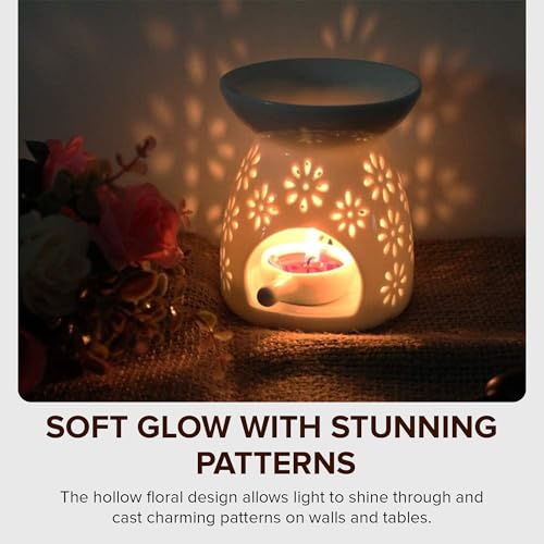 - Star Pattern Ceramic Oil Burner – Just what you need to fill your space with pleasant scents and create a relaxing mood. The beautiful star cutouts let warm light shine through while the deep dish holds oils or wax melts. Ideal for year round use in any room where you want to add a touch of comfort.