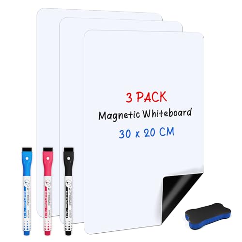 - All Magnetic Accessories – Fridge board magnetic set includes 3 x magnetic board, 1 x magnetic eraser, 3 x magnetic dry erase markers with cap eraser. All of them are magnetic, easy to keep all your whiteboard accessories together, so you will never lose them again