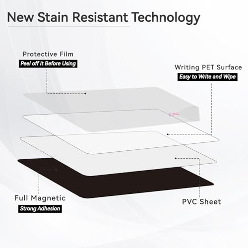 - Easy to Write and Clean – The surface of magnets whiteboard has a PET sheet that has improved stain-resistant technology. Even 30 days after writing on fridge whiteboard with a marker the words can be wiped off easily and leave no mark