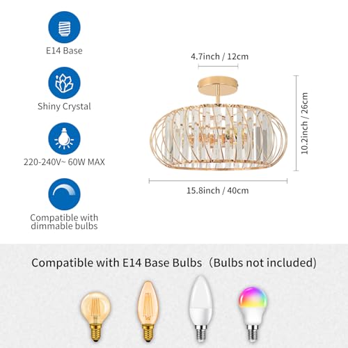 - Ceiling light shade: L40*W40*H26 CM- Bigger size ,E14 Base.Bulb Type:LED,Halogen or incandescence.(Bulb not include)