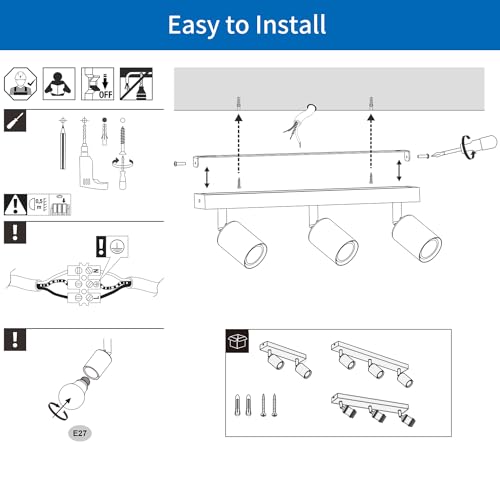 - Rotatable and Adjustable:it can be tilted 180°and swiveled 350°,the ceiling light E27 can point in different directions as needed to illuminate different areas of the room. Ideally suited as a dining room light or bedroom light.