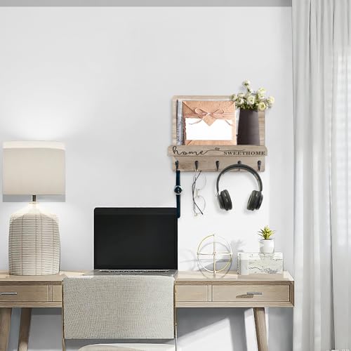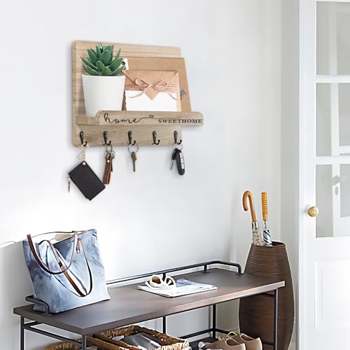 - Multi-functional Organization:Key holder hooks will helps you to save and utilize the wall space and avoid lossing items,the shelf and hooks of the mail holder are perfect for hanging and organizing Keys,hats,sunglasses,wallet,leashes,letters,bills,newspaper and more,keeping you daily necessaries in order.
