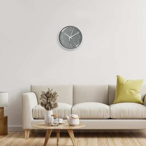 - 🕘【High Quality Wall Clock】The outer frame of the silent wall clock is made of high-quality ABS material, which is not easy to fade. The mirror surface is made of highly transparent glass, making it easy to read. The hands are made of metal and reinforced with copper sleeves for greater durability.