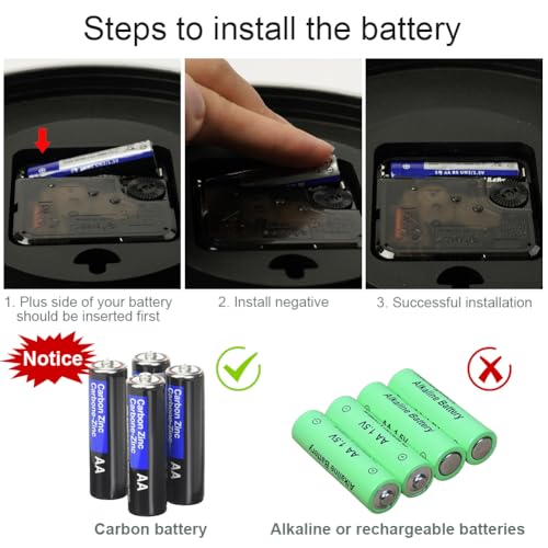 - 🕘【Battery Powered】The wall clock is powered by 1 AA carbon battery, the battery can be replaced, please do not use high-power batteries. Note: Batteries need to be purchased separately. (not included), we do not recommend the use of high load batteries.