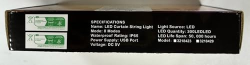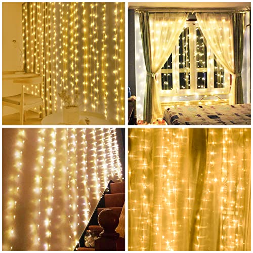 - 【Upgrade 300 LED Curtain Lights】The length of this LED indoor curtain light set is 9.84 feet/3 meters, suitable for curtain walls with a length of 3m and a width of 3m. This fairy string curtain light made of alloy wire, contains 300 super bright LEDs.