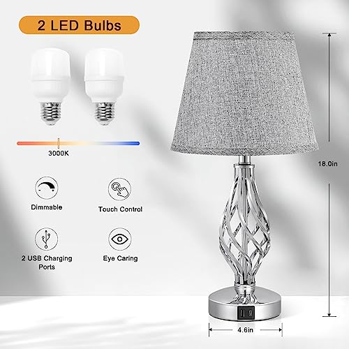 - Two LED Bulbs Included – This touch lamps set of 2 will come with Two Q50 E27 led bulbs, which will saves you money and reduces additional market trips to find compatible bulbs. These high-quality energy-saving LED bulbs will consume lower power, provide more stable lighting, combine with the gray shade to emit soft light to protect the eyesight of you and your family.