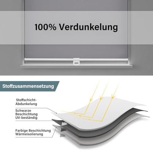 - Excellent material: AOSKY wireless roller blinds are made of 100% polyester fabric with reinforced thermal insulation coating, which feels soft and smooth. No sharp edges, high abrasion resistance and easy to clean. Our blackout roller blinds block 100% of sunlight and UV rays. The thermal backing reduces heat loss in the room and protects against cold through the windows in winter and summer, which helps to reduce your energy costs.