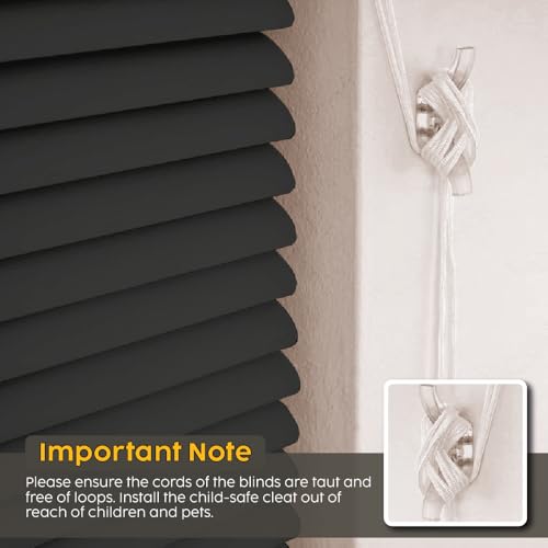 - Keep cords taut & loop-free for safety & install the child-safe cleat out of reach of kids and pets. Venetian blinds for windows are not room-darkening as they are NOT blackout & may allow some light through slat gaps. Ideal for use as kitchen, window door blinds, bathroom blinds.