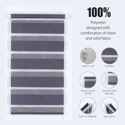 - Zebra blinds made of 100% polyester sheer solid fabric with a light-filtering effect, anti-static blind. These roller blinds have a dual-layer design with good breathability.
