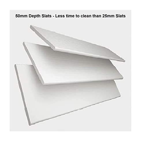 - Less Cleaning Time: Fitted with 50mm depth slats which offer a more fuss free look and take half the time to clean than 25mm slats. Use either a vacuum or wipe clean using a sponge or damp cloth