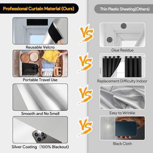 - Light and Easy to Store: Black out blind comes with a storage bag that fits easily into an organiser or the boot. Thanks to the wrinkle-resistant fabric, the blackout window cover folds without visible creases. The blackout blinds no drilling features a lightweight design and environmentally friendly odourless materials, so you can take magic blackout blind with you on holiday or business trips.