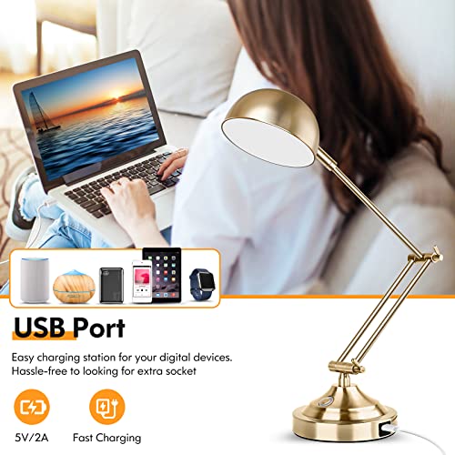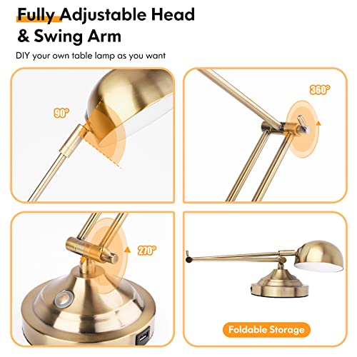 - 【Eye Protection & No Assembling Needed】This vintage gold desk lamp equipped with superior LED beads which gives out soft, flicker-free, no buzz lighting for more than 25000+ hours. Hence there’s no replacement needed for it. Besides, zero step to get your reading lamp once received! Put it on your bedside nightstand, reading desk, living room table right away without any troublesome procedures
