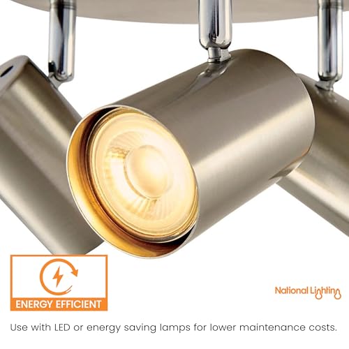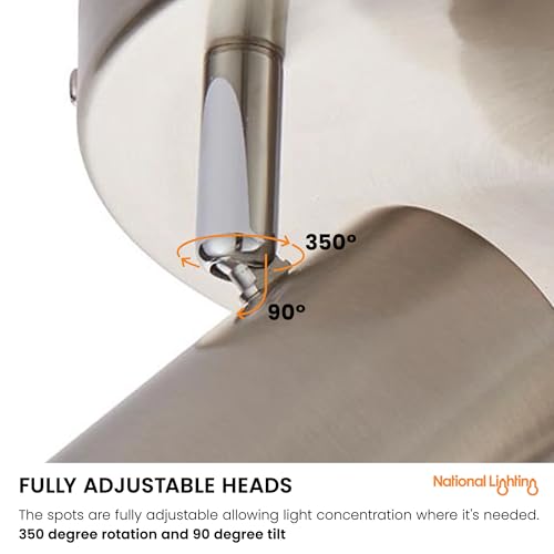 - Compatible with LED lamps. The spots are fully adjustable allowing light concentration where it's needed. 350 degree rotation and 90 degree tilt