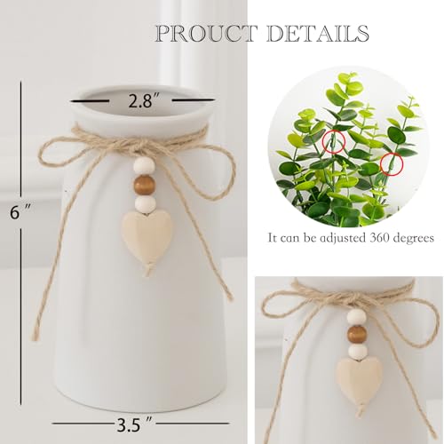 - Charming Modern Ceramic Vase: The elegant ceramic vase features a rustic design, complete with a twine-wrapped bow and a wooden heart charm, adding a cozy farmhouse touch to any space.