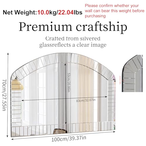 - Large Arched Wall Mirror – Sophisticated unique arched shape mirror with beveled glass edge frame, Decorative Wall Mirror effortlessly combines sleek lines and elegant aesthetics, creating a stunning visual effect and centre of attraction, Arched Art Wall Mirror is the perfect accent piece to any room, including entrances to the home, over the mantle in a dining room, over the console in a living room, over a bed in a bedroom, bath room, guest room,making a fabulous focal point in the house