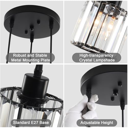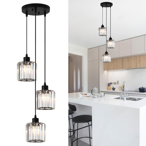 - 💡【3-Light Pendant Ceiling Light】This chandeliers ceiling light is made of high-quality crystal and durable metal, which is more translucent and shiny. The sturdy frame and gorgeous effects create a beautiful and elegant appearance, the light passing through the crystal decoration creates a warm and romantic atmosphere.