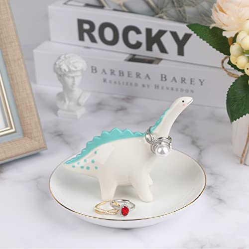 - ❤️【Dinosaur Design】The ring holder features a white jewelry plate with gold grim, with a cute dinosaur ring stand. This dinosaur jewelry holder is the perfect place to store your wedding rings, earrings, necklaces, bracelets, etc.