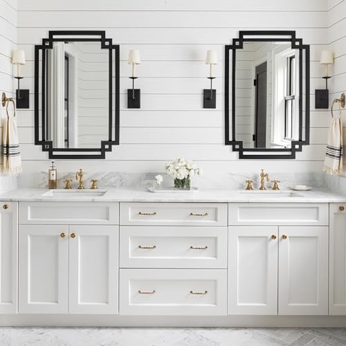 - Geometric Construction: The 24 x 36 inches wall mirror is composed of irregular and rectangular metal frame in a black finish, It gives the mirror a simple and modern look, full of elegance. This mirror is a beautiful part of any home decorating scheme