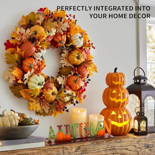 - 1. Elegant Autumn Design: Elevate the autumnal vibe with our finely crafted autumn sign, featuring pumpkins and maple leaves, the perfect thanksgiving decorations to create a warm, inviting ambiance.