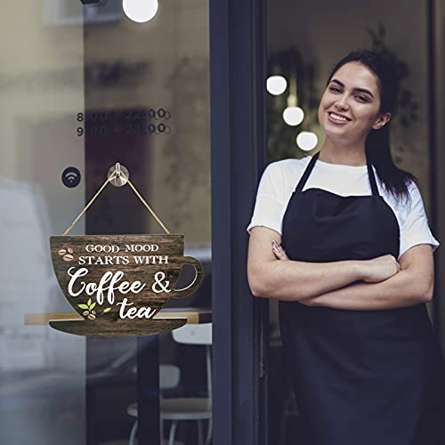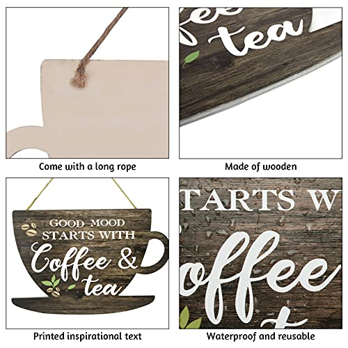 - Artcraft: 12.6 x 11.8 inch(L*W), 0.24 inch thickness, Coffee & Tea sign is expertly crafted from solid wood, featuring a trendy, weathered finish. Single side printed with artistic words "GOOD MOON STARTS WITH COFFEE & TEA"