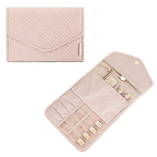 - 5 Kinds of Storage Space – ring holder, earrings panel, necklace buckled strap, interlayer visible zip pouch, long zip pocket to sort earrings, rings necklaces and watch in one place
