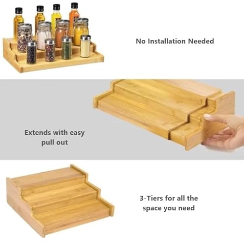 - Stylish and Functional: The natural bamboo finish complements any kitchen decor, while the tiered design keeps your spice storage easily accessible and neatly arranged.