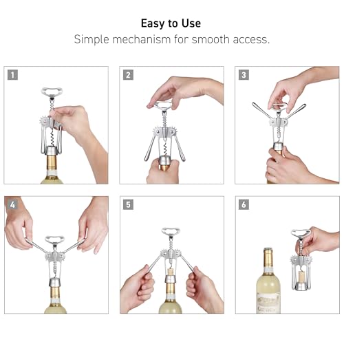 - Easy Wing Lever Design – Effortlessly open wine bottles with the smooth wing lever mechanism, delivering maximum leverage, comfort, and elegance for wine lovers who appreciate style and efficiency in every uncorking.