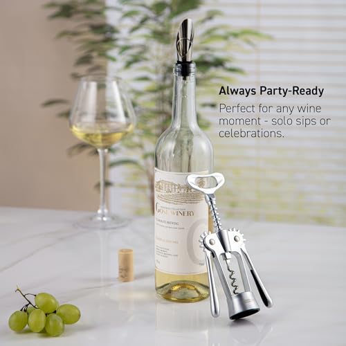 - All-in-One Functionality – Features an integrated bottle opener on the handle, perfect for uncorking wine and opening beer or sparkling drink caps, making it an ideal wine gift set for birthdays, housewarmings, or holiday celebrations.