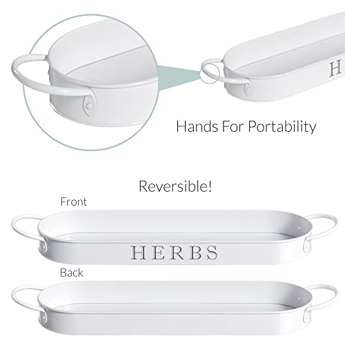 - Herb pots with tray – Add greenery and a touch of farmhouse decor to any space with these vintage metal herb pot planters. Place them in your kitchen or in a window to create an eye-catching aesthetic.