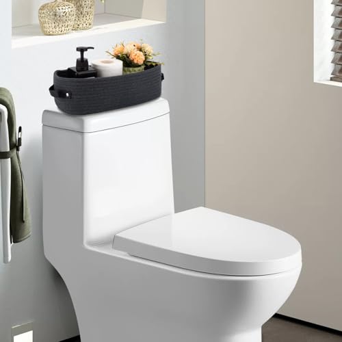 - Multipurpose: The decor storage basket fits perfectly on the counter or toilet tank, and is perfect for holding vase, flower pot, air freshener, soap dispenser. This storage basket can be used not only in the bathroom, but also as an organizer in the living room, bedroom or nursery