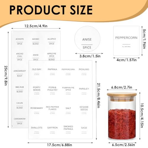 - 【Package Contents】You will get 12 spice jars with bamboo lids with the capacity of 200ml measuring 2.56 x 2.7 x 4.15 inches, 144 Circle and 110 Square spice jar labels for the most common spices, herbs, and seasonings.spice jars with lids and labels spice jars with labels spices jars