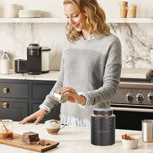 - Material – Crafted from high-quality food-grade tin-coated steel. The tea coffee and sugar canisters set is sturdy and durable, easy to open.The Lids can be opened easily so you can get your ingredients out effortlessly.