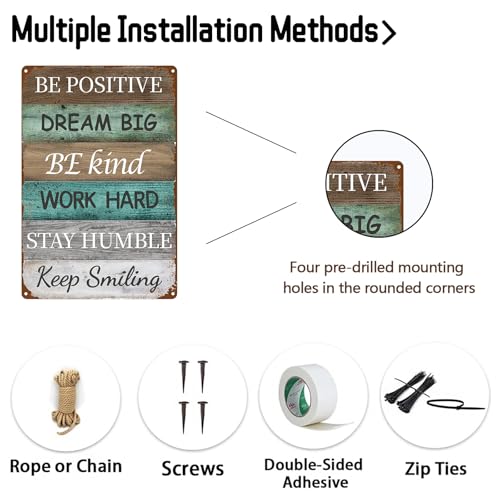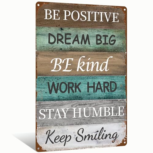 - Inspirational Positive Quote Sign with Rustic Wood Background: Features uplifting phrases including “BE POSITIVE,” “DREAM BIG,” “BE kind,” “WORK HARD,” “STAY HUMBLE,” and “Keep Smiling” displayed over a charming wooden plank design—evoking warmth and motivation