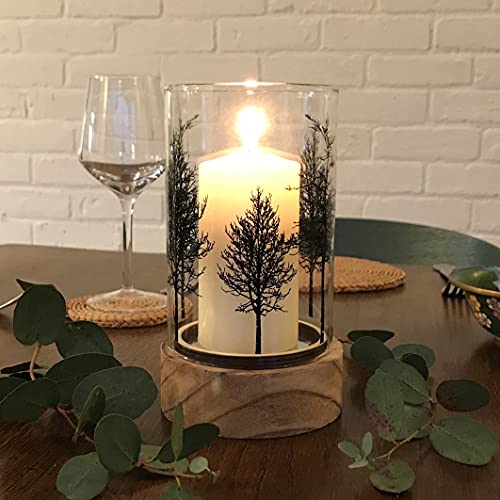 - TREE DESIGN: Clear glass with a pretty woodland design in black around the circumference of the glass. These elegant candle holders produce a flickering warm amber glow which creates an incredible visual effect