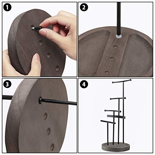 - 5 Tiers Jewellery Stand – It is a powerful multifunctional jewelry rack – top rod(20.5 in) for hanging necklaces, second rod(16 in) and third rod(9.5 in) for hanging bracelets and earrings, and the bottom rod(7 in) for hanging rings with a 7 in base. With up to 29 ring loops to hold your rings and rubber plugs to stabilize the rods, it is easy to assemble and provides ample space to store and display your jewellery.