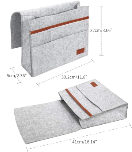 - 【Quality】 99% polyester felt and 1% PU leather and fit precision sewing, which makes the bedside organiser robust and durable. Its size is 12.6L x 9.8H x 4W inches.