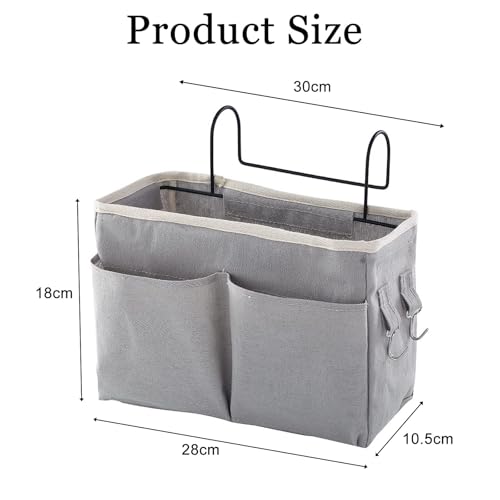 - Package Content: You will receive 1 grey pocket bed.The size of the bedside pocket with iron rods is 30x18x10.5 cm. It features 1 large pocket, 2 small pockets, and side mesh pockets, meeting various storage needs