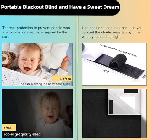 - Full Shading and Thermal Insulation: This portable blackout blind has silver finish that reflects heat, keeping the room at a comfortable temperature. The thick blackout shades material easily blocks all light in the room, creating a completely dark sleeping environment while helping to maintain your baby's sleep routine