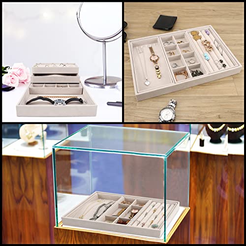 - MULTIPURPOSE STORAGE: These trays can be used on tabletops, dressing tables, vanity units and nightstands. They can be used inside drawers in a dressing room, wardrobe, closet or chest of drawers too. Use them for a trade show, shop display or in a cabinet. Our non-slip and wear-resistant trays can be used to store necklaces, earrings, bracelets, watches, brooches, pendants, sunglasses, hair clips and cufflinks in them. Give them as a gift for Christmas, Birthdays or anniversaries.