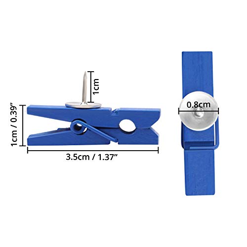 - 2 IN 1 PUSH PIN CLIPS: Included in our set is 70 push pin pegs. Each peg is 3.5cm (1.37 inch) in length, 1cm (0.39 inch) in height and features a 1cm long pin with a base diameter of 0.8cm. Our pegs are made from natural wood and come in a range of bright rainbow colours; yellow, pink, red, hot pink, fuscia, indigo, grey, baby blue, blue, navy, dark green and green. The pegs are durable and strong, making them easy to push into your cork board. All pins come in a storage tub.